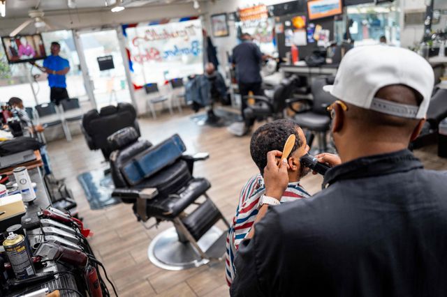 Een kapperszaak in Austin, Texas. De Amerikaanse arbeidsmarkt is zwak, wat sommigen toeschrijven aan AI. Bij veel beroepsgroepen, zoals bij kappers, is daar echter nog geen sprake van, constateert McEntarfer