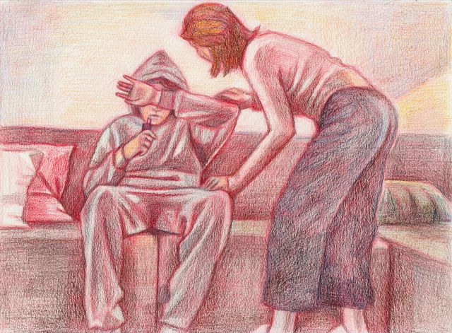 Hij ligt out op de bank in zijn slaapkamer. Zijn moeder buigt zich over de tiener. „Hé, hallo, reageer eens.” Ze pakt hem bij zijn schouder en schudt. Geen reactie. Wat is er aan de hand? Ze grijpt haar telefoon. Googlen. Misschien een nicotinevergiftiging? Zijn ogen gaan even open. „Ben je daar?” „Ja, mam.” Hij zakt weer weg. Zij schudt opnieuw aan zijn schouder. Hij reageert niet. En dan: „Mam, laat me met rust.”