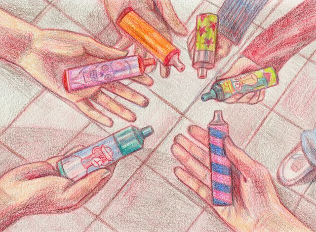 Die smaakjesvape raakte de afgelopen jaren in zwang bij jongeren. De damp is makkelijk te inhaleren, er blijft een zoete smaak achter op je lippen en de felgekleurde apparaatjes zien er fancy uit. Twee jaar geleden kwam er een verbod op de e-sigaretten, die vrijwel allemaal uit China komen, vanwege schadelijke stoffen en de hoge concentratie nicotine. Jongeren raken er razendsnel verslaafd aan. Overigens mogen nicotinevapes met een tabakssmaak wel verkocht worden, zij het alleen aan volwassenen.