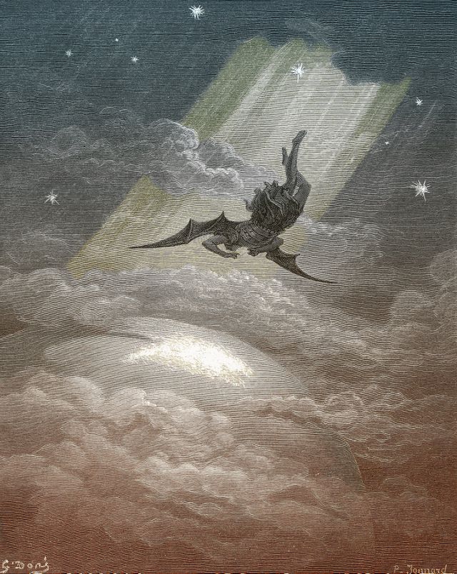 Satan daalt af naar de aarde, illustratie van Gustave Doré.