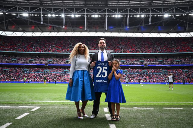 Alexis Ohanian met Serena Williams en dochter Olympia, afgelopen mei op Wembley.