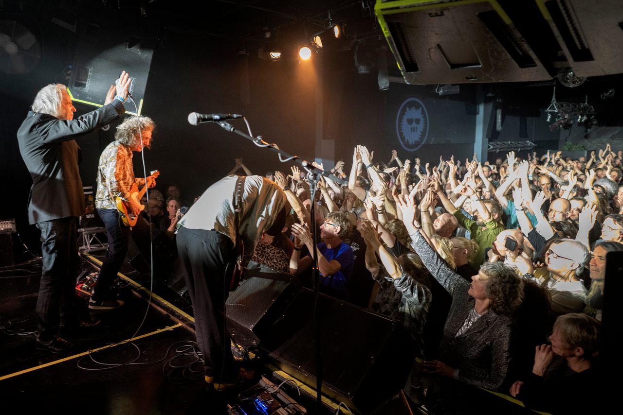 Als hij na negenen zijn zwarte Adidasjes verruilt voor gevaarlijke zwarte puntlaarzen, is de bravoure terug. „Dat zal ze leren”, zegt hij nippend uit een glas Jack Daniels – „een graag geziene gast”. Het uitverkochte Bolwerk schreeuwt rond half tien de band toe. De fans hebben sowieso de avond van hun leven: dankzij een wifi-storing is het bier gratis. Wel hangt er bij de bar een QR-code voor vrijwillige tikkies.