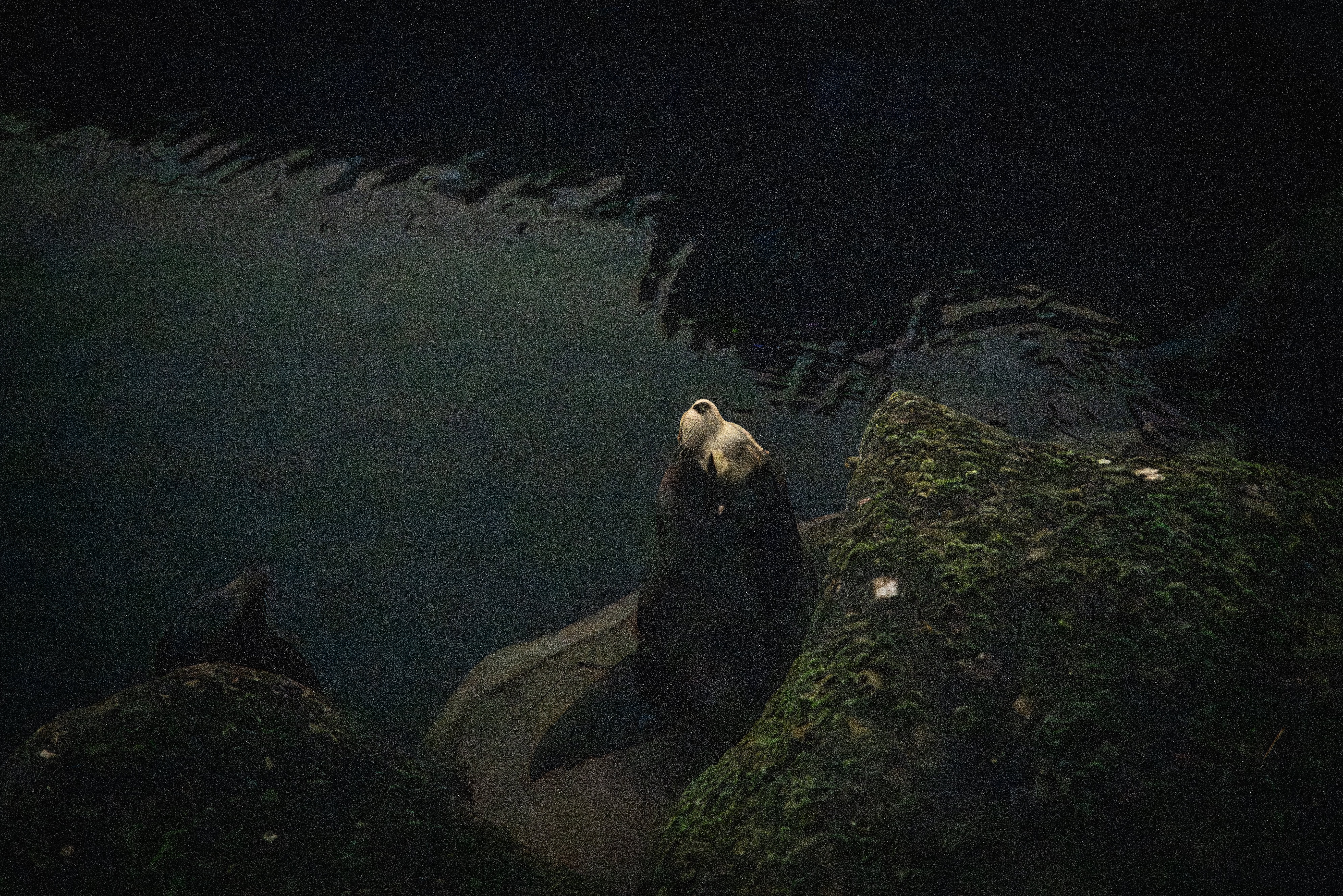 Vlak voor het slapengaan maken de zeeleeuwen luidruchtig ruzie. Ze liggen op de kant, over elkaar uitgestort als mikadostokjes. Eentje is daarbij niet welkom, dus: gedoe.