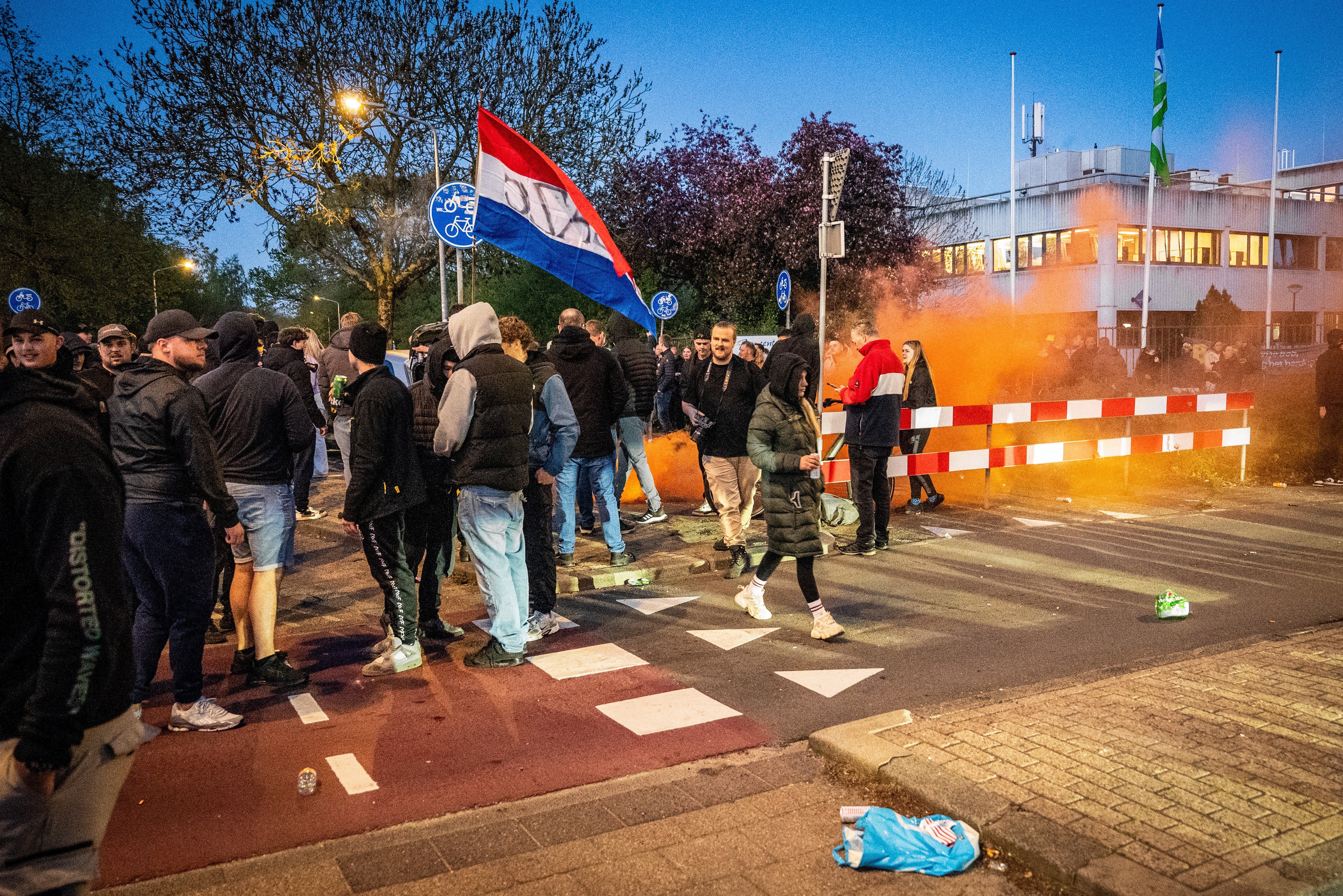 De eerste harde vuurwerkknal klinkt als het donderdagavond begint te schemeren. Een man zwaait met een grote Nederlandse vlag en loopt naar de rotonde naast het gemeentehuis van Wijdemeren, in het dorp Loosdrecht. „Azc weg ermee!” scandeert hij. Nu komen ook tientallen andere demonstranten in beweging. Ze roepen hem na: ”Azc weg ermee!” Een tiener slaat het vanaf de stoeprand gade en zegt tegen zijn maat: „Ik ben benieuwd of het vanavond rustig blijft.’’