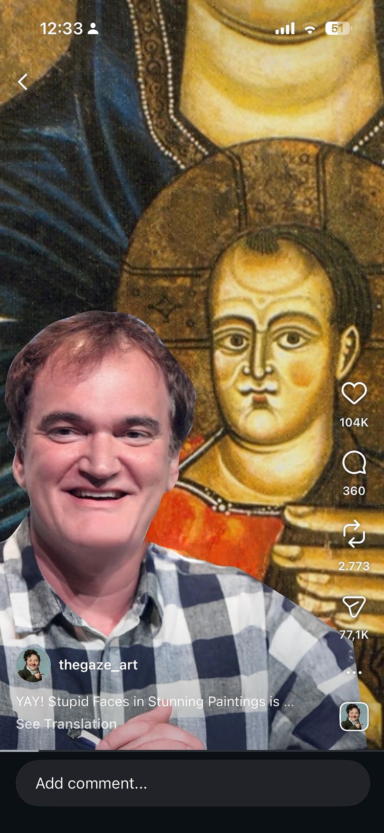 The Gaze heet het kanaal waarmee Antwerpenaar Van Mierlo (42) zes jaar geleden begon. Inmiddels is het kanaal zo succesvol dat hij er van kan leven. Van Mierlo, die theater- en filmwetenschappen heeft gestudeerd, heeft nu ook een boek uitgegeven: Stupid faces in Stunning Paintings. Vijftig verhalen over de dwaze kant van grote kunst, variërend van renaissance tot rococo, en van oud-christelijke Ethiopische tot vroegmoderne westerse kunst. Eind maart wordt het in het Engels uitgebracht. Want: 98 procent van zijn publiek, zoals Van Mierlo dat zelf zegt, zit in het buitenland: Italië, Amerika, India.