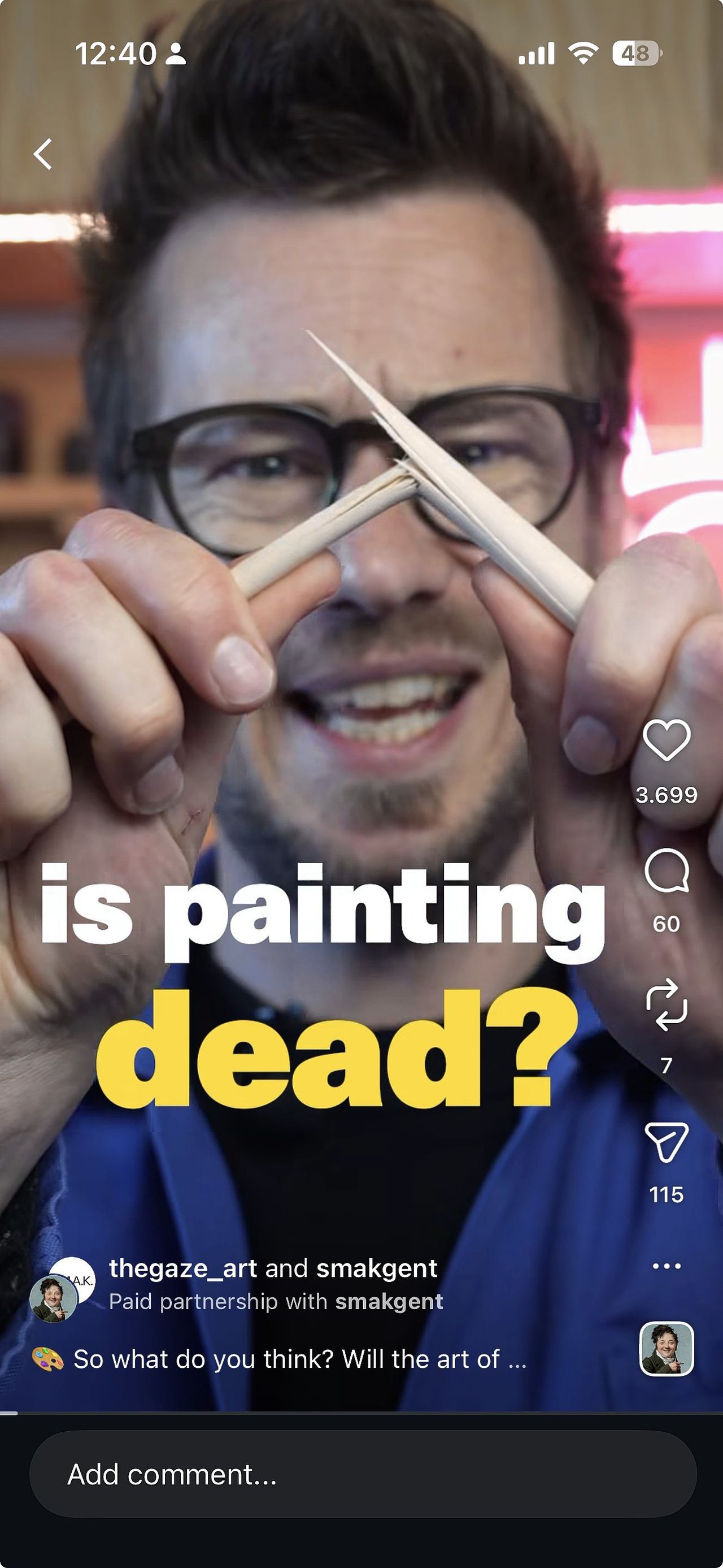 „The Gaze begon op YouTube als een hobbyproject, iets voor mezelf naast mijn werk als digital creative bij de Vlaamse omroep VRT. Tijdens corona begon ik ook op TikTok. Mijn eerste filmpje daar ging over het Lam Gods van de gebroeders Van Eyck, dat was tijdens corona. Dat kreeg direct 100 duizend kijkers. Het ontplofte, omdat het toen nieuw was: een andere manier om over kunst te praten. Entertainment én iets leren, dat bleek een hele krachtige combinatie.”