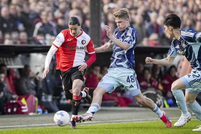 Spelmaker Luciano Valente, samen met aanvaller Anis Hadj Moussa doorgaans de meest begaafde Feyenoord-speler, loopt zich herhaaldelijk vast. Terwijl eenvoudige oplossingen voor de hand lijken te liggen. Linksbuiten Mika Godts, bijna altijd de gevaarlijkste Ajax-aanvaller, is te lang onzichtbaar zeker gezien zijn tegenstander: de vaste Feyenoord-reserve Jordan Lotomba, normaal een bron van onrust, maar niet deze zondag. Als Godts even in kansrijke positie komt, schiet hij hoog over.
