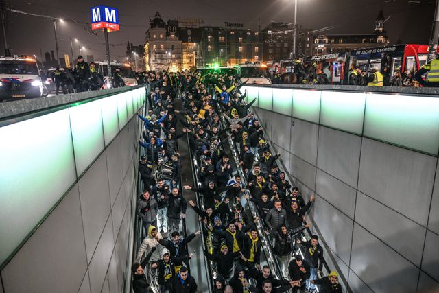 „Levensgevaarlijk.” Als metropersoneel van het Amsterdamse stadsvervoerbedrijf GVB het achteraf heeft over de Champions League-wedstrijd van Ajax tegen Benfica, op 25 november vorig jaar, is de angst nog voelbaar in interne communicatiekanalen. Het GVB vervoert die dinsdagavond zo’n tweeduizend Benfica-supporters vanaf de Dam naar de Johan Cruijff-Arena, en daarna weer terug. In het nieuws gaat het vooral over de wedstrijd – die Ajax verliest.