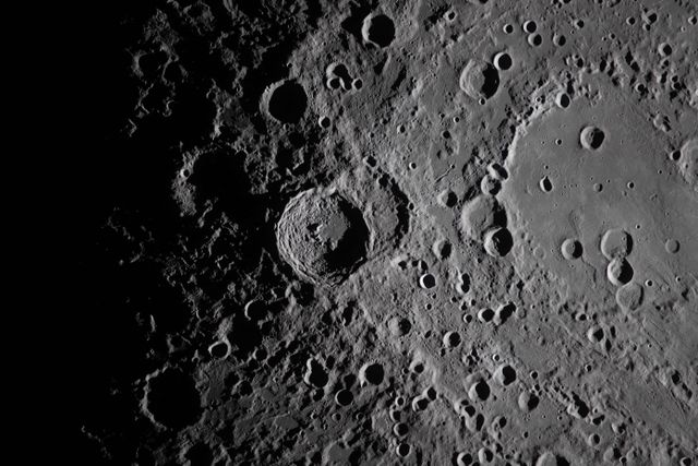 Een close-up van de Vivalovkrater, aan de rand van het Hertzsprungbasin, aan de achterzijde van de maan.