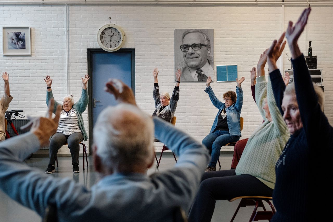 Stoelyoga in het buurtcentrum, en straatbeeld in Leiden-Noord.