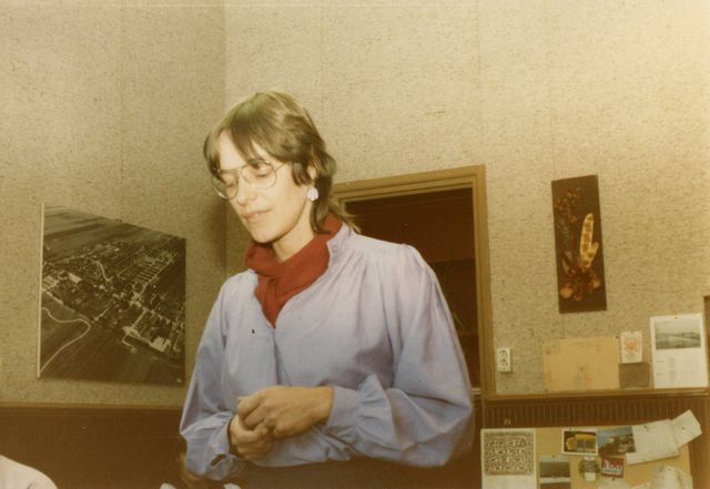 Hanneke Jagersma, de communistische burgemeester van Beerta, bij de bruiloft in 1984.