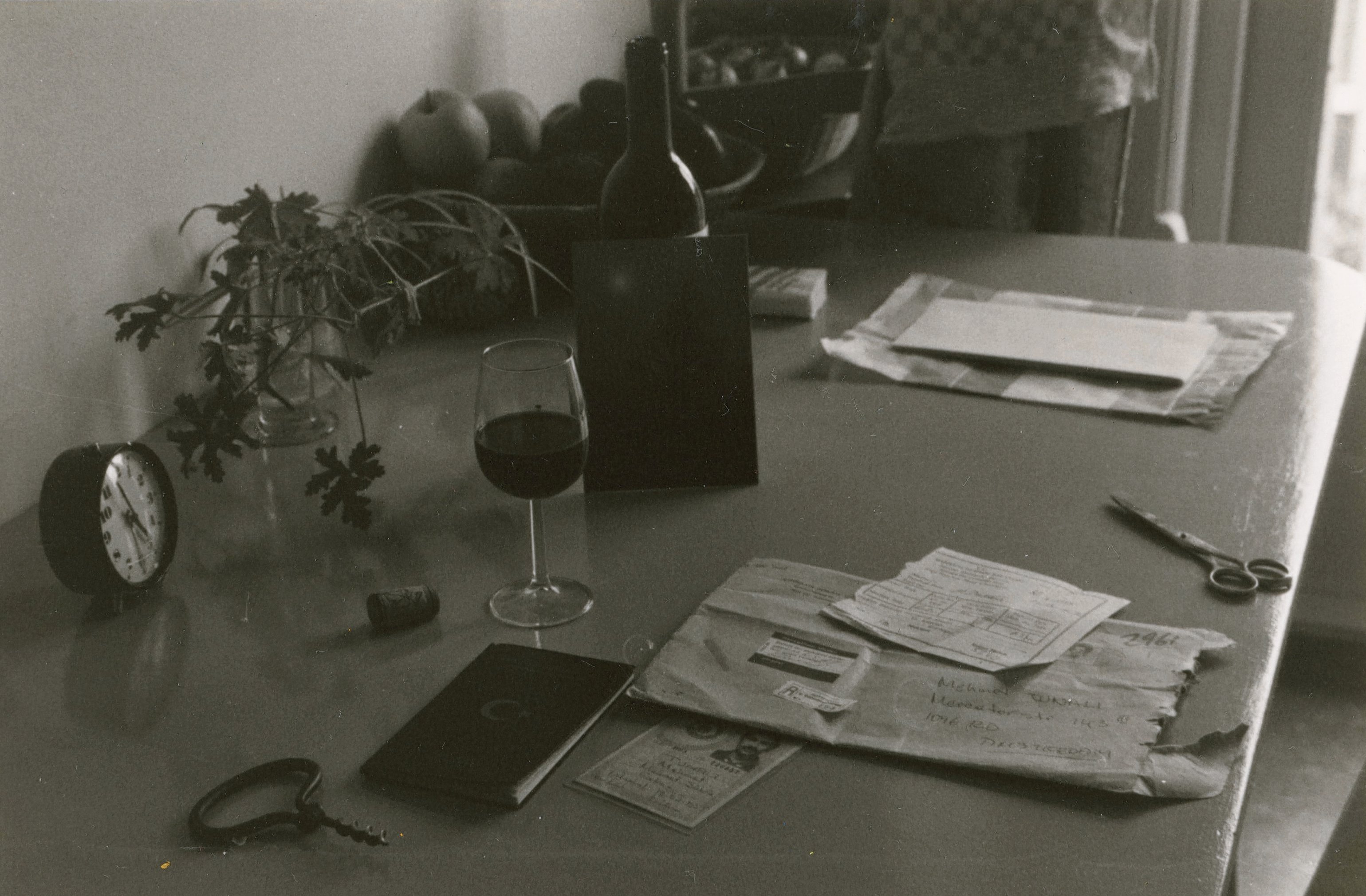 Het ongeldige Turkse paspoort met een glas wijn op de keukentafel in Amsterdam.