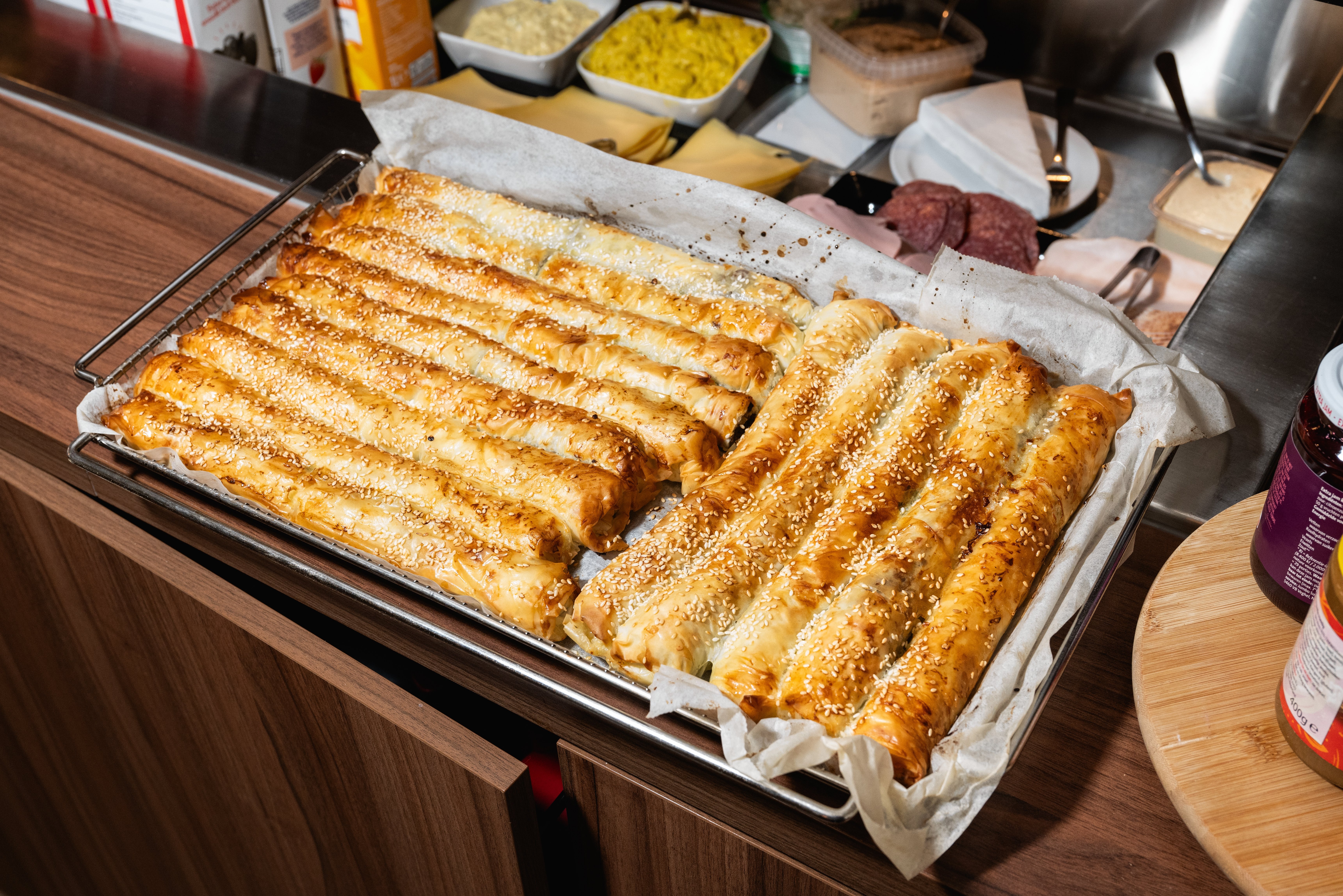 Verse böreks en afbakbroodjes in de kantine.