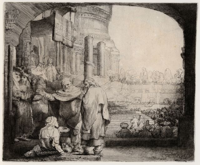 Rembrandt van Rijn: ‘Petrus en Johannes genezen de kreupele bij de tempelpoort, 1659.