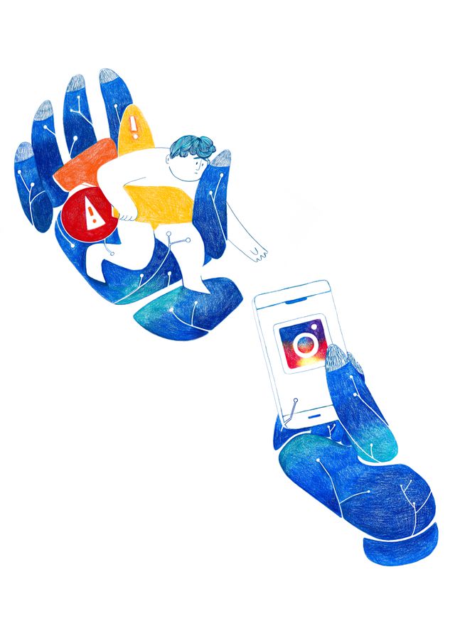 Illustratie Caitlin Becker HofAchter die scores zit een soort gedragsanalyse. Hetzelfde gedrag dat maakt dat een algoritme iemand iets voorschotelt, kan ertoe leiden dat je in het vizier komt van de moderatiesystemen, legt Leerssen uit. Dat kan samenhangen met wat je zelf plaatst, liket of zoekt. Maar ook met gedragspatronen rondom een account. Hij geeft een voorbeeld: ,,Stel, je hebt een account met kinderen in badkostuums en kinderen die borstvoeding krijgen. Waarom zijn de volgers dan alleen oudere mannen? We weten niet precies hoe platforms te werk gaan, maar het ligt voor de hand dat zulke patronen worden opgepikt.”