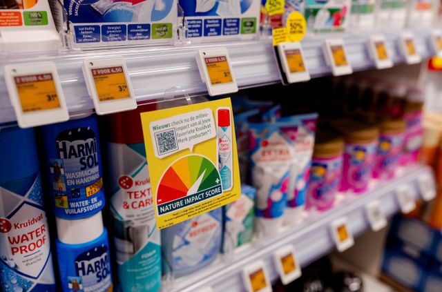 Foto KruidvatDe hoogste score is nog niet uitgedeeld. Het overgrote deel van de beoordeelde artikelen zit in het midden – de lichtgroene en gele scores gelden voor ieder zo’n 40 procent van de producten. 8,5 procent heeft een lage milieu-impact, evenveel als het aandeel producten met een hoge impact. En 3 procent (27 producten) krijgt de rode, laagste score.