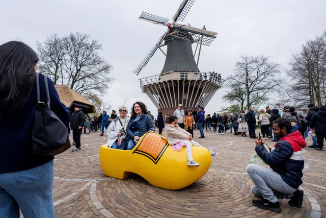 Een jong stel besluit aan te sluiten bij de rij voor de molen. Tigran (26) en Olag (25) zijn geboren in Rusland maar wonen al jaren in het Verenigd Koninkrijk. Tijdens dit lange weekend in Amsterdam („We hebben ook het Van Goghmuseum gezien, en de grachten”) wilden ze in elk geval ook hierheen. „Natuurlijk, dit is de populairste plek om te bezoeken.” Ook zij roemen de schoonheid van tulpen, en de vele verschijningsvormen ervan. Daarvoor moet je echt naar Holland, wisten ze. Een beetje jaloers zijn ze wel. „The scale here is really impressive.”