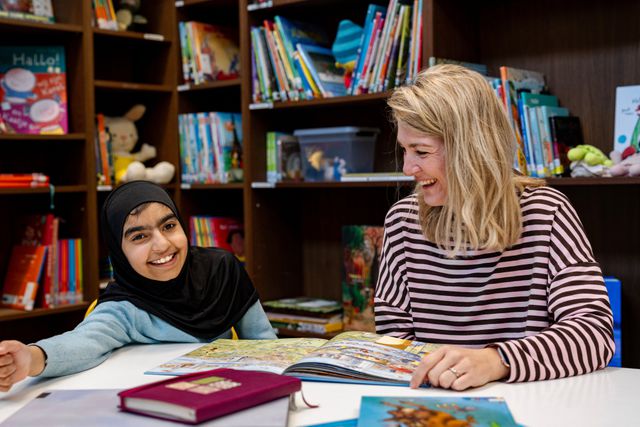 Er staan vooral prentenboeken en boekjes voor beginnende lezers. „Dat komt doordat onze leerlingen pas op latere leeftijd leren lezen”, legt onderwijsassistent Kirsten van der Hoek uit, die leescoördinator van de school is. „Wat lastig is: veel boeken voor beginnende lezers zijn gericht op kinderen van zes jaar. Maar stel je voor dat je acht of negen bent, dan vind je daar niks aan. Het is heel fijn dat de bibliotheek ons kan ondersteunen bij het zoeken van boeken die wel aansluiten bij hun belevingswereld.”