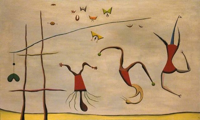 Een schilderij van Desmond Morris uit 1949: ‘De springende drie’.