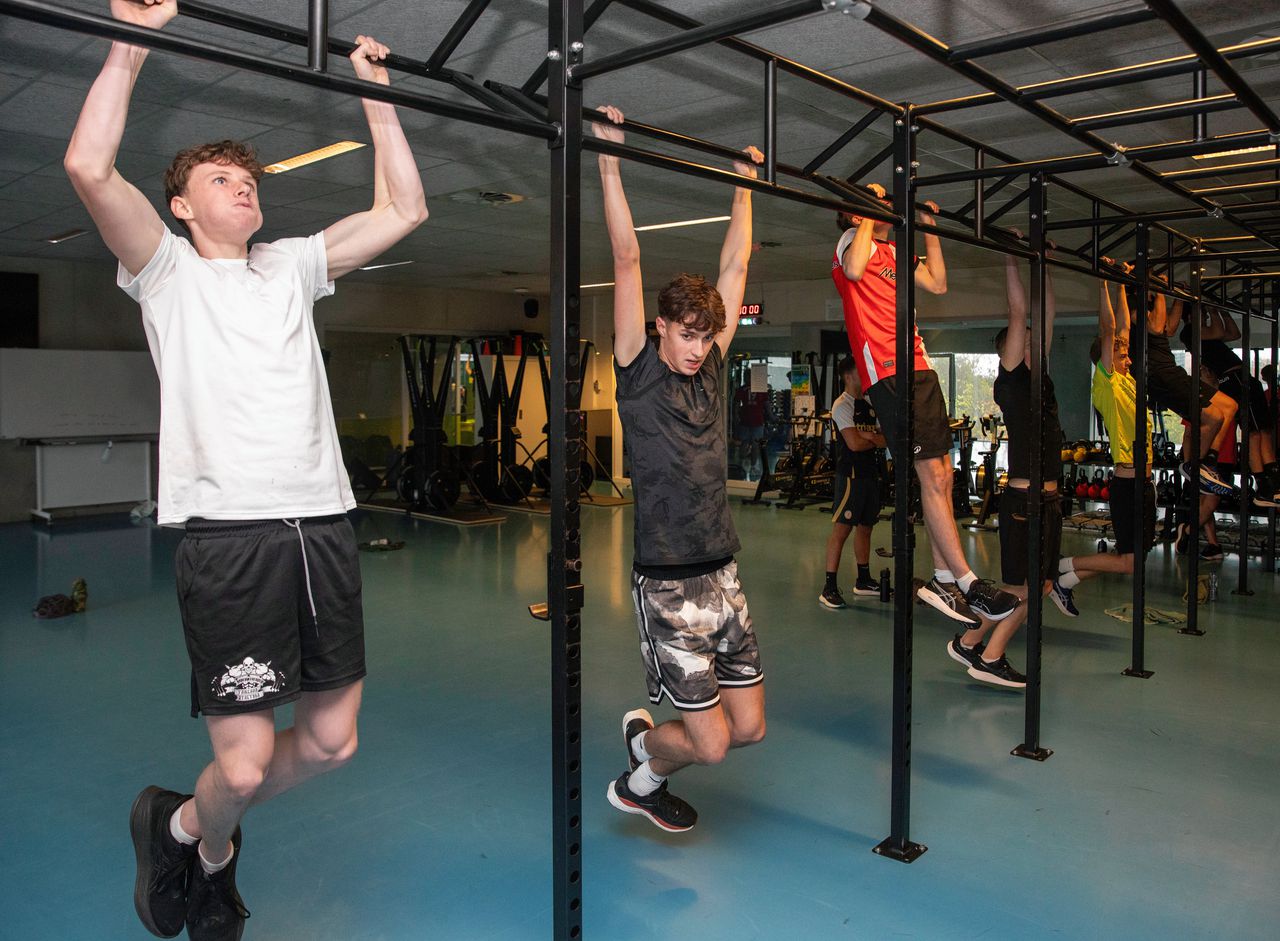 De NWT die maandag begint, trekt veel MBO-studenten Sport en Bewegen. Sit-ups als onderdeel van het lesprogramma in Rotterdam.