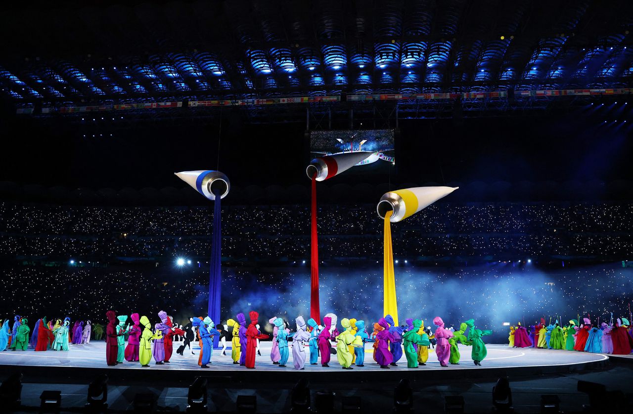 Daarvoor liepen modellen gekleed in pakken van de vorig jaar overleden modeontwerper Giorgio Armani het stadion in Milaan binnen, en zong de Amerikaanse zangeres Mariah Carey de Italiaanse klassieker ‘Volare’.