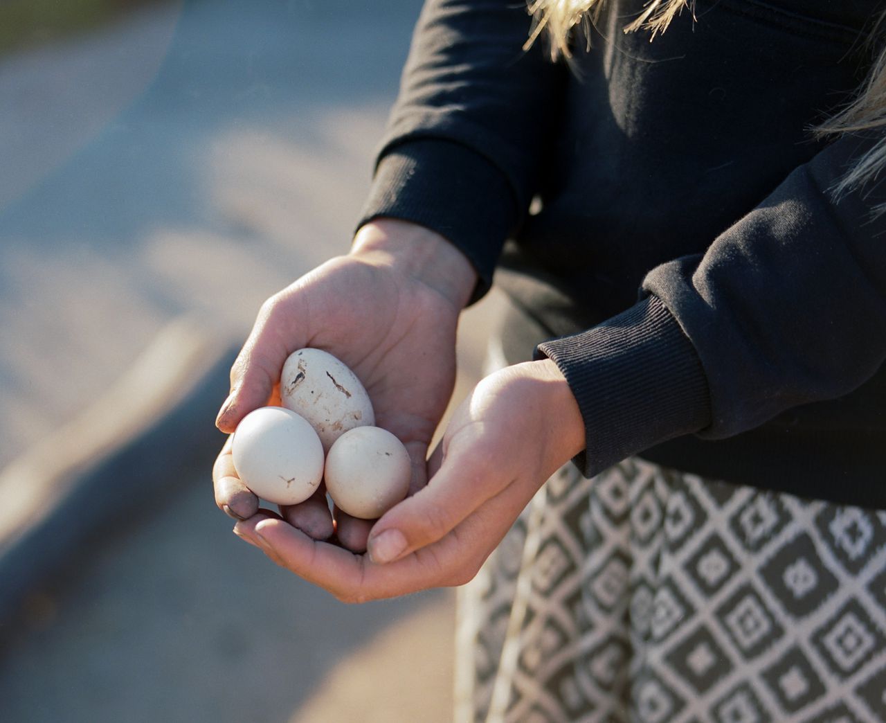 Maar ze heeft het toch voor elkaar gebokst, zegt haar moeder: een eigen plek in het leven, met dieren op een stukje land in de buurt van haar huis. , geiten, kippen, twee duiven, eenden, een stalkat en een voedselbos.