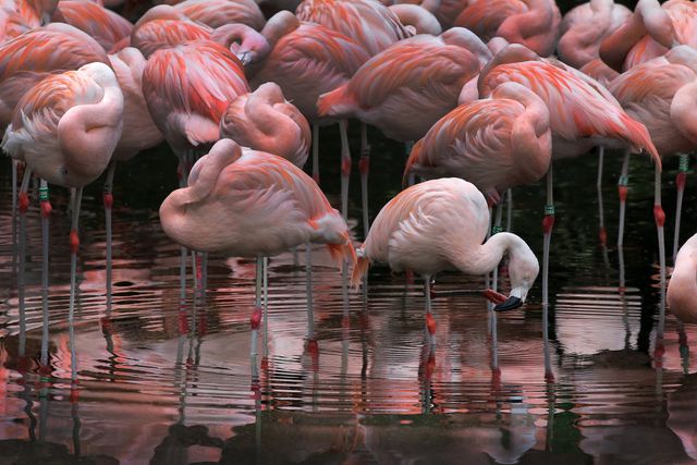 Een mannetjeskoppel Chileense flamingo’s in Artis.