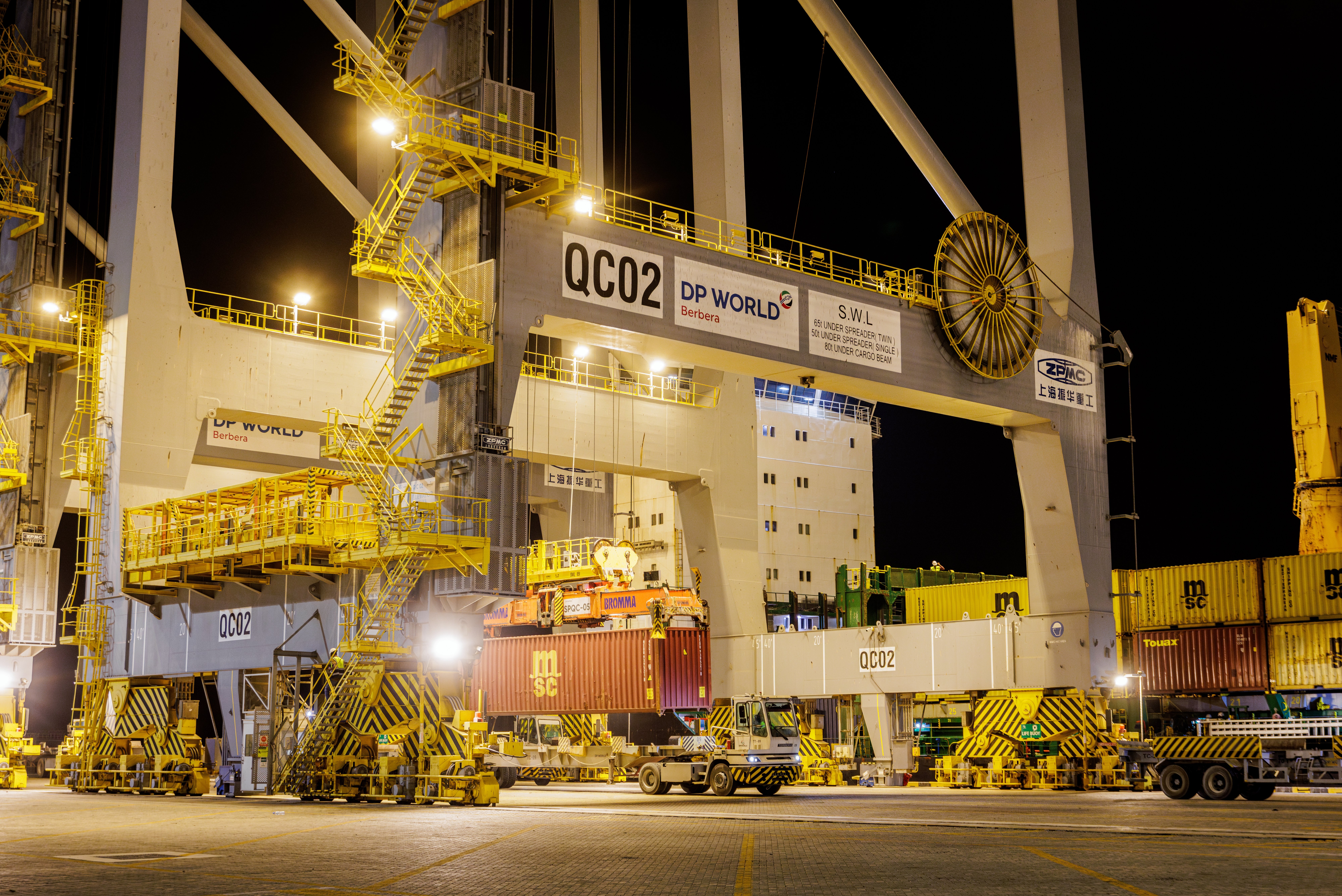 De haven van Berbera, de belangrijkste toegangspoort van Somaliland. In de haven, waar DP World 450 miljoen dollar investeerde in kades en kranen, worden containerschepen voor zowel Somaliland als Ethiopië gelost.