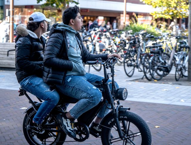 Jongeren klonteren samen in Assen. Incluis fatbike.
