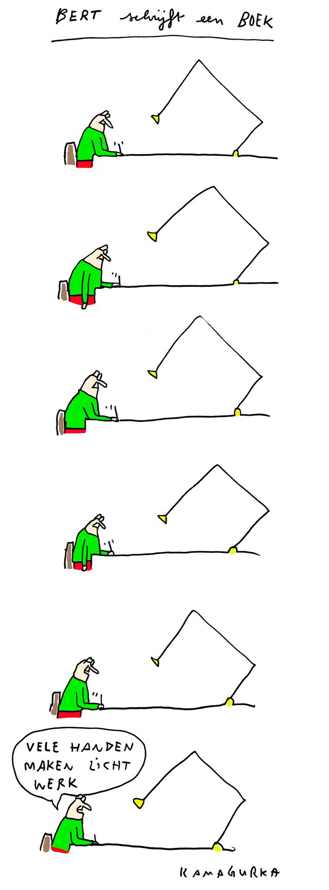 Kamagurka laat elke week zien hoe Bert Vanderslagmulders vordert met het schrijven van een boek .