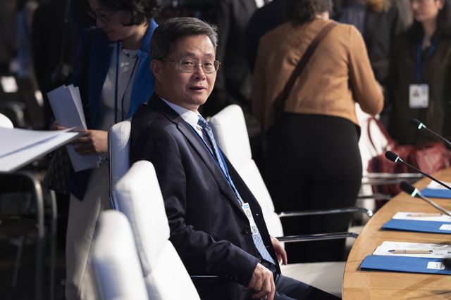 De Chinese minister van Financiën Lan Fo’an tijdens de voorjaarsvergadering van het IMF.