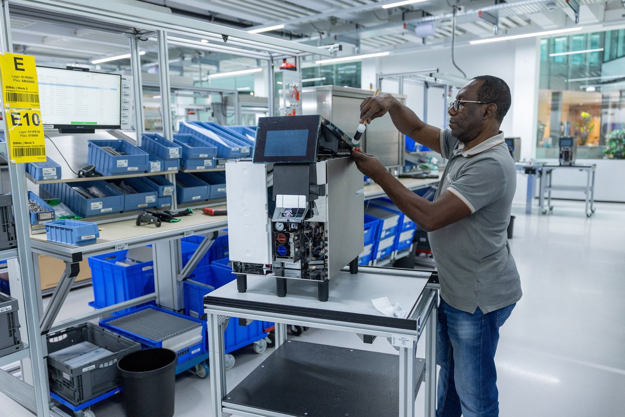 Een medewerker zet een koffiemachine in elkaar van Thermoplan.