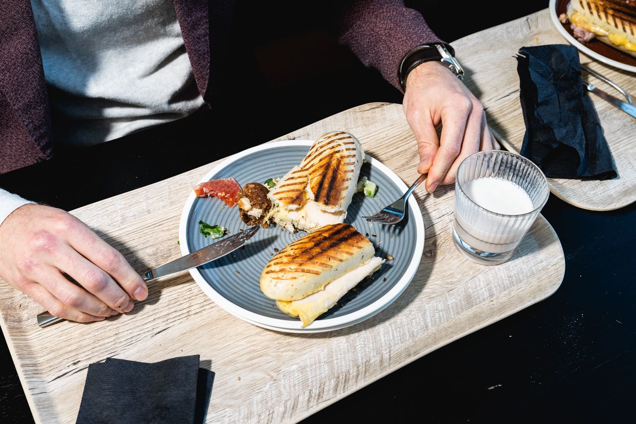 klinkt door het restaurant, Jan Vayne is begonnen met spelen. Het is druk bij de panini’s. Joël de Jong (kiest kaas en kipfilet) en Robin Petersen (kaas en ham) nemen elke dag een panini. Om de dag wisselen ze de taak om de broodjes op tijd op te halen uit het grillapparaat. Vandaag moet Joël. Samen met hun consultancy-collega’s Arjan van der Laan en Rob Gambon zitten ze graag elke dag aan hetzelfde tafeltje. Arjan is niet zo onder de indruk van de „ooit wereldberoemde” Jan Vayne: „Het is vooral leuk voor gasten, voor de werknemers zelf voegt het niet zo veel toe.”