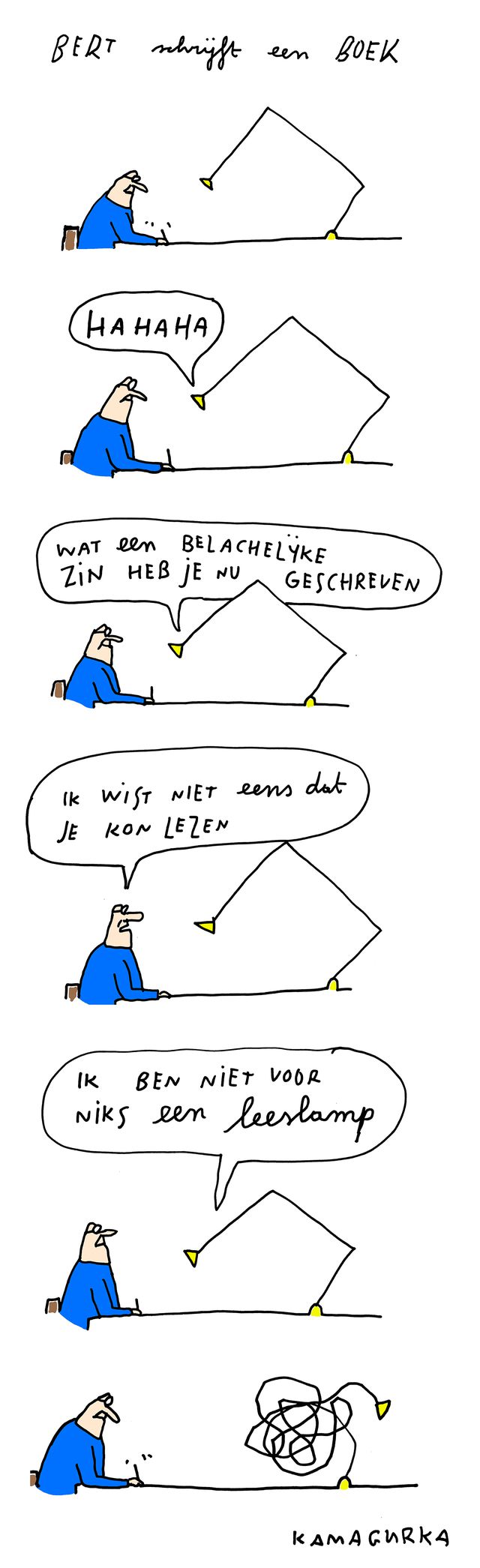 Kamagurka laat elke week zien hoe Bert Vanderslagmulders vordert met het schrijven van een boek.