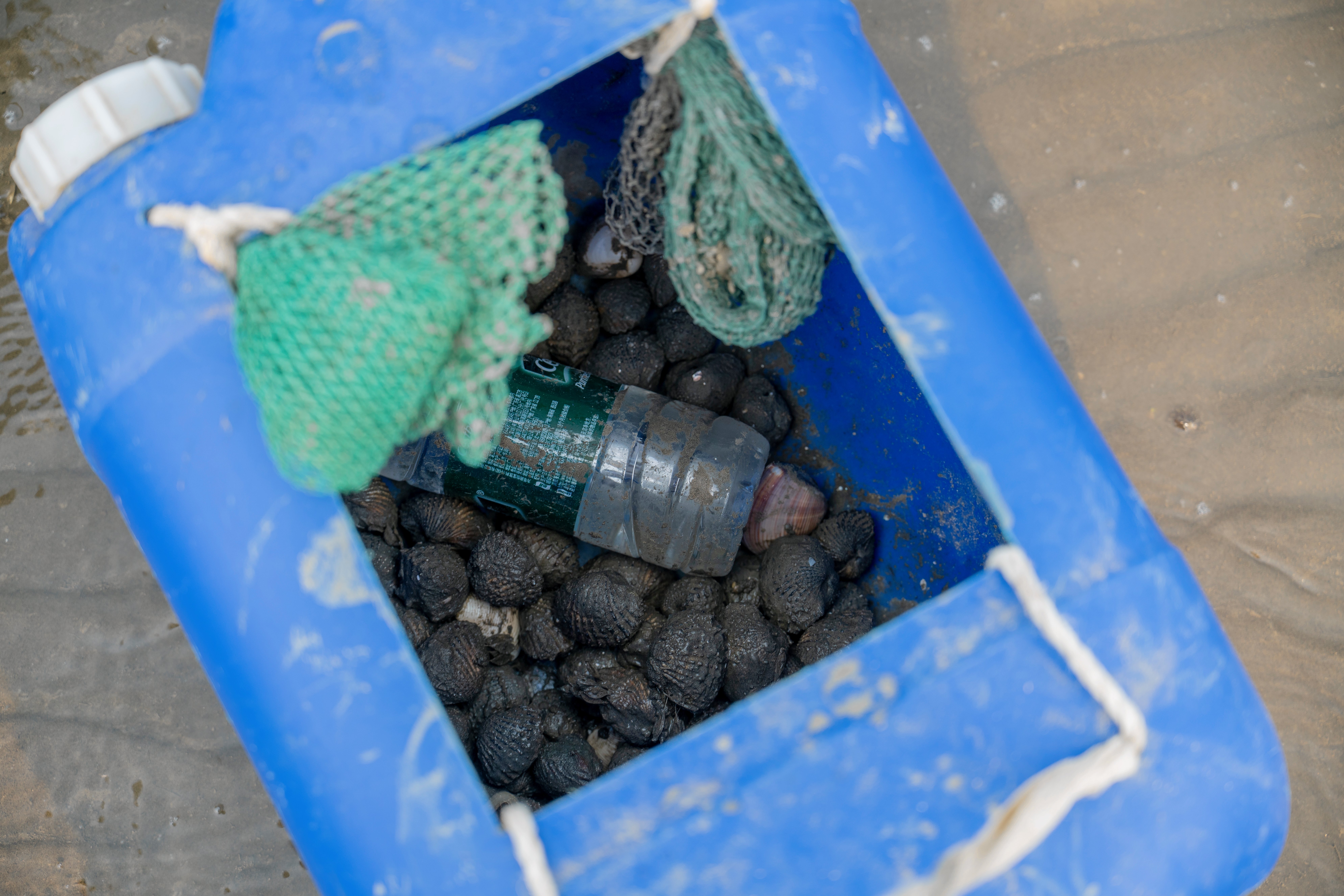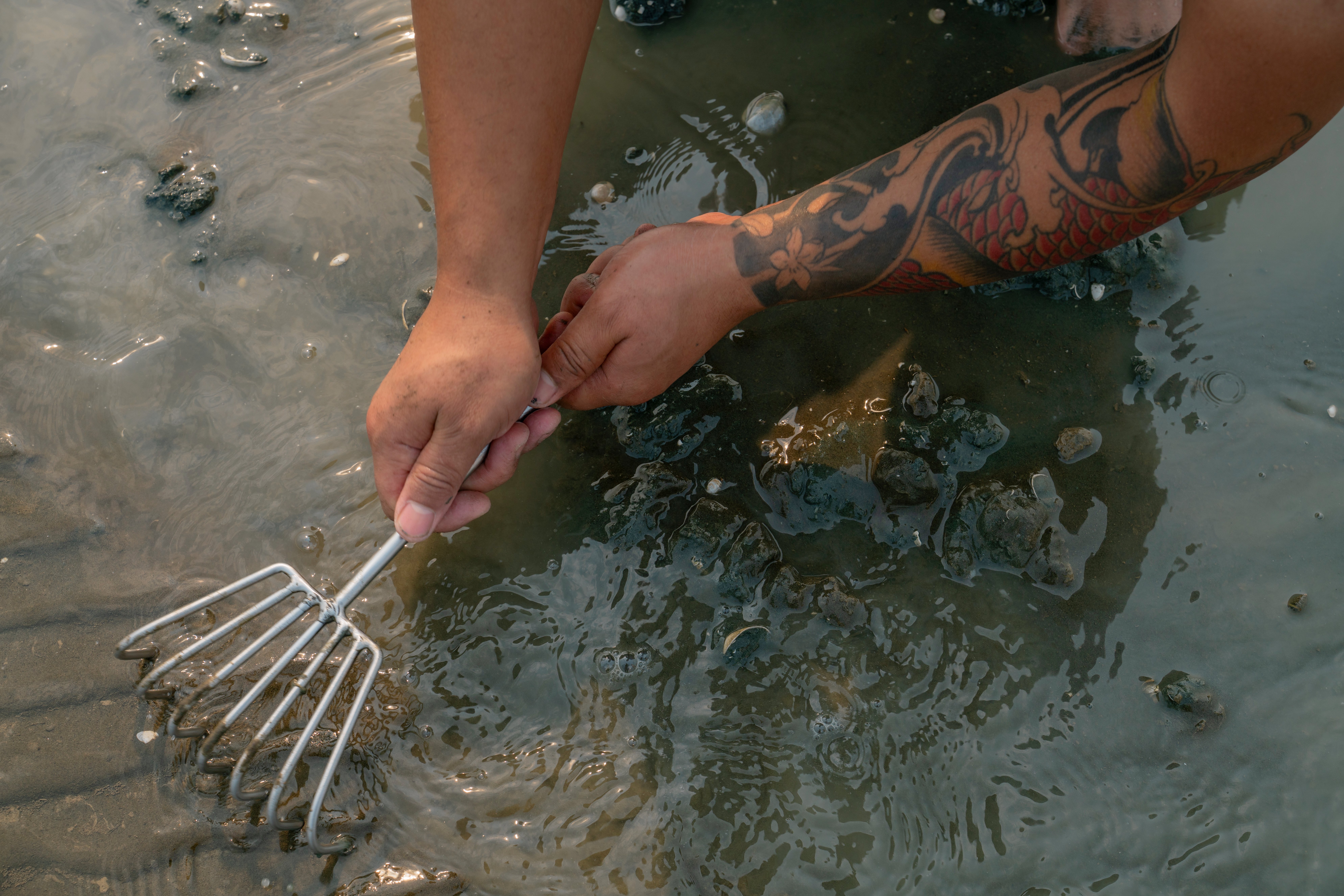 NRC wordt door She, een 27-jarige toerist uit de zuidwestelijke provincie Yunnan, uitgenodigd om het graven „zelf te ervaren” en krijgt een harkje aangereikt. In zijn emmer heeft She al aardig wat schelpdieren, garnalen en bewoonde slakkenhuizen verzameld. Hij vindt de schelpen „supermooi” en zegt de meeste te zullen teruggooien. „Dit is echt voor de lol.” Zijn reisgenoot vraagt zich af of ze aan een restaurant kunnen vragen om hun vondsten te koken.
