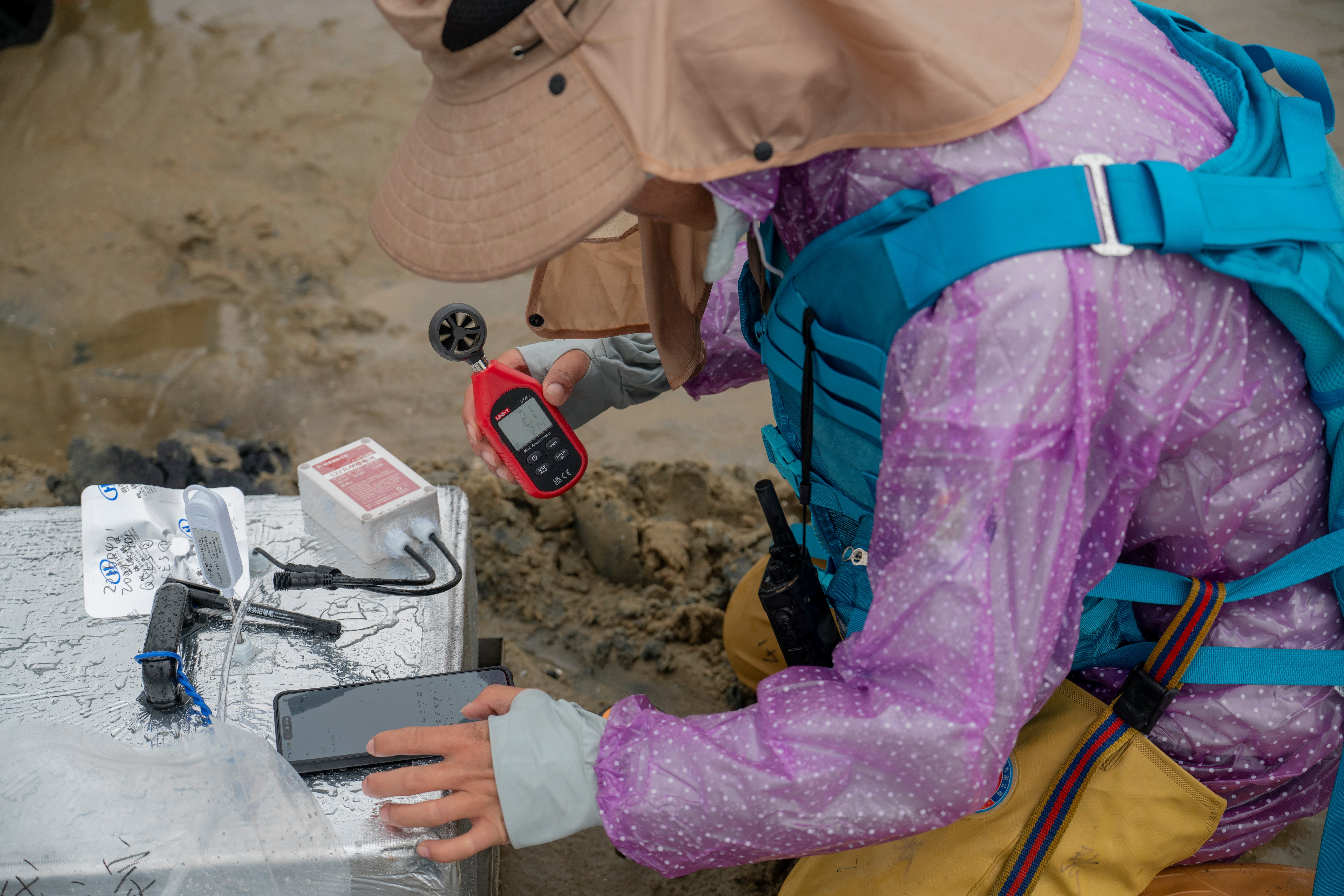 Eenmaal terug bij de rest van het team, blijkt dat een van de studenten die middag driemaal in de modder is weggezakt. Ze vond het heftig en wil de volgende dag wat rustiger aandoen. Peng vindt dat geen probleem. Hij neemt haar metingen over.